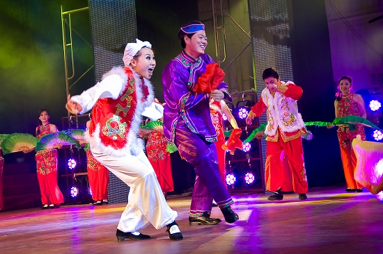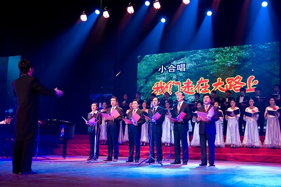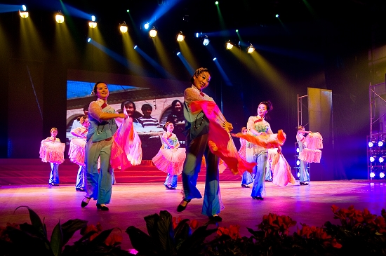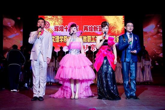 晚会在音乐系爱乐乐团大合唱《爱我中华》优美雄壮的歌声中拉开帷幕,大家载歌载舞放声歌唱我院的发展变化,尽情显示文理人的精神风貌。舞蹈《陕北秧歌》、《安塞腰鼓》、《秧歌情》以三秦大地的地域文化特色,充分表达了文理人放飞西部梦想的满腔热情。短剧《琴声》中的残疾人养父为了供养女儿读书弹琴卖艺的故事深深扣动着观众的心灵。音乐情景剧《岁月如歌》、诗朗诵《辉煌的跨越》真实的再现了宝文理的发展历程及取得的辉煌成就。慷慨激昂的《健身排舞》、《掀起你的盖头来》和优柔华美《床前明月光》、《剪纸姑娘》、《唐古拉风》等舞蹈让观众如痴如醉。一首轻快、诙谐的反串歌曲《我爱我家》掀起了不小的高潮,台下观众笑声不绝,掌声不断。歌伴舞《家和万事兴》、《中国之最》、《国家》、《美了美了美了》,激起了人们对祖国大家庭的热爱之情。院领导的小合唱《团结就是力量》、《我们走在大路上》再次掀起了整台晚会的高潮,激发了大家立足岗位努力工作、再创辉煌的决心。演员们热情奔放的表演既潇洒自如、激情豪放、活力四射,又优雅柔美、情趣盎然、脉脉含情。洋溢着青春的活力,彰显着教职员工的精神文化生活。每个精心表演的节目的背后都凝聚着所有演职人员的心血与汗水,凝聚着学院各级领导、协作单位、各演出分会及其单位党政领导的大力支持,凝聚着工会干部的辛勤操劳。本台晚会紧紧围绕主题,充分展示了节目策划、编剧、舞美、灯光、音响、字幕、场地、艺术指导、舞台监理和节目主持等方方面面的密切协作精神。