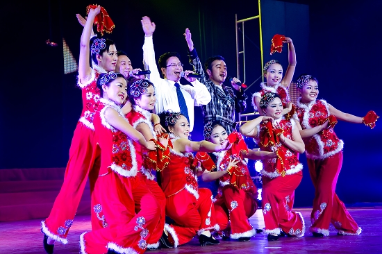 本台晚会是我院教职工元旦文艺晚会的第十场演出,也是十年来最精彩的一场晚会,整场晚会精彩倍至,高潮迭起,舞台灯光华美,音响浑厚,为我院师生员工带来了新年的喜庆,活跃了校园气氛,丰富了大家的业余生活,为师生员工提供了一个展现自己的文艺大舞台。晚会在《走进新时代》的欢庆歌声中圆满落下帷幕。晚会结束后,学院党政领导与演职人员合影留念。(院工会供稿)