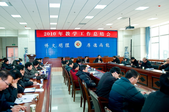 1月5日下午,学院在新校区甘棠厅召开了2010年教学工作总结会。院党委书记、院长王志刚出席会议。副院长傅志军主持会议。各系(部)主任、副主任及相关职能部门负责人参加了会议。