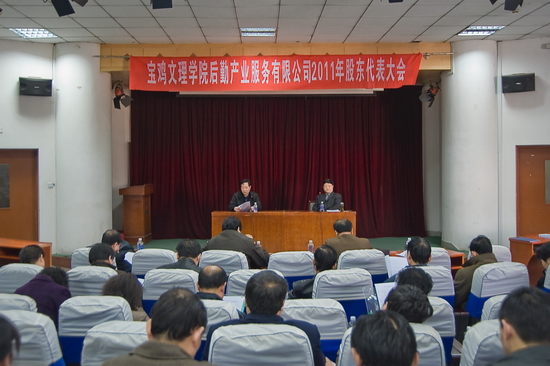 3月26日上午,学院后勤产业服务有限公司在老校区召开2011年股东代表定期会议。会议听取了公司董事长赵尚东关于2010年度董事会工作报告,公司总经理龙军权关于2010年度公司财务决算报告和2011年度公司财务预算报告,公司监事会召集人刘锡让关于2010年度公司监事会工作报告和2010年度财务审计情况报告,公司董事长赵尚东关于2010年度公司利润分配方案的提案、关于变更新建13号学生公寓楼筹资方案的提案和关于对公司建筑物用地由零租赁变更为有偿使用的提案等。38名股东代表参加了会议,部分股东旁听了会议。
