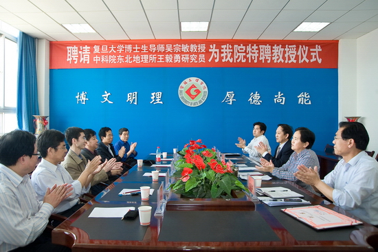 4月28日上午,我院在新校区第一会议室举行聘请复旦大学吴宗敏教授和中国科学院王毅勇研究员为我院特聘教授仪式。院党委书记、院长王志刚出席会议并讲话,副院长赵荣侠主持聘任仪式。