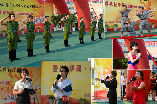 5月6日下午,由教务处、院团委主办,中文系团总支承办的我院第二十一届“校园之春”大学生文化艺术节开幕式暨“中华诵·颂歌献给党”红色经典诵读大赛在新校区举行。院党委组织部部长郑存库、学工部(处)长李周让、教务处处长杨子元、学工部副部长刘景世、数学系党总支副书记王栓堂、中文系党总支副书记赵艳、各系团总支书记以及我院各系学生代表300余人参加了本次活动。院团委副书记党建波主持开幕式。