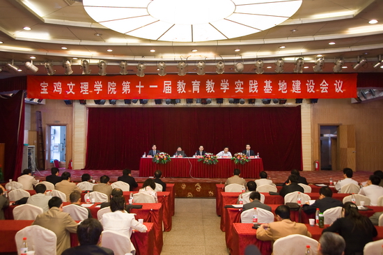 2011年5月13—14日,学院在宝鸡市万利酒店召开第十一届教育教学实践基地建设会议。院党委书记、院长王志刚,副院长傅志军,宝鸡市教育局局长苏永兴,教务处处长杨子元,宝鸡石油中学校长史继光,我院17个系(部)主任以及来自西安、宝鸡、咸阳、铜川等地区的120多个教育教学实践基地的领导共150余人参加了会议。傅志军主持开幕式,杨子元主持闭幕式。