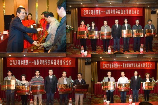 高教研究室主任、教务处副处长田延峰宣读了我院新聘兼职教授、副教授、副研究员名单,教务处副处长孙新宣读了我院新建的教育教学实践基地名单和新增的示范实习基地名单。傅志军与新建教育教学实践基地领导签订了协议书,向他们赠送了铜牌,并向新增的示范实习基地领导赠送了奖牌,向新聘的兼职教授、副教授、副研究员颁发了聘书。会后,与会代表参观了宝鸡青铜器博物院。