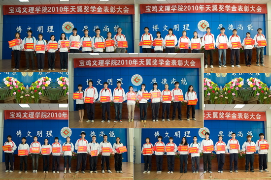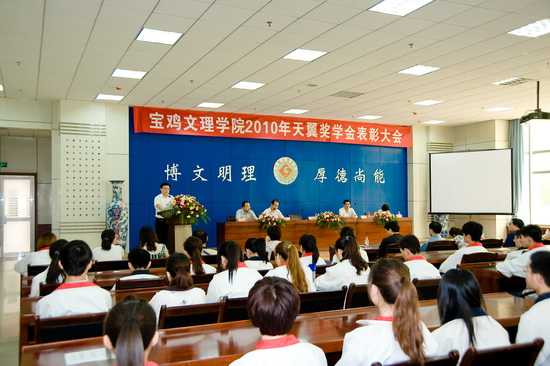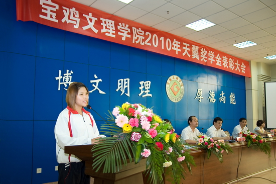 会上,院大学生资助管理中心主任刘景世宣读了《bat365在线中国官网登录入口关于表彰2010年天翼奖学金获得者的决定》。双方领导为获奖学生颁发了奖金和证书。获奖学生代表中文系王蓓同学向中国电信宝鸡分公司和我院领导汇报了一年来的思想、学习、生活中的情况和取得的成绩,表达了对中国电信宝鸡分公司的感激之情及继续努力的决心。