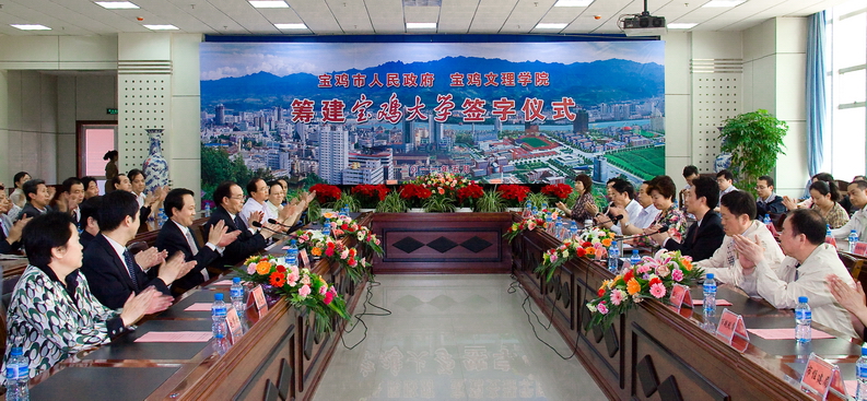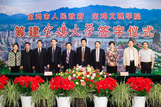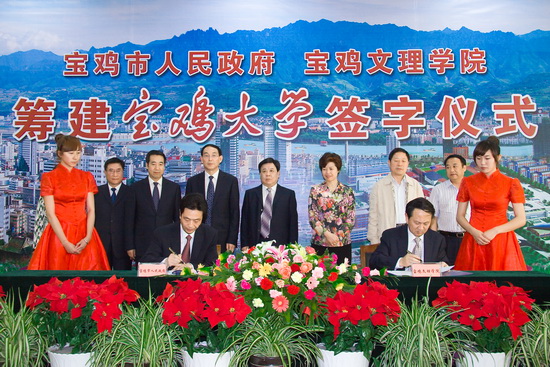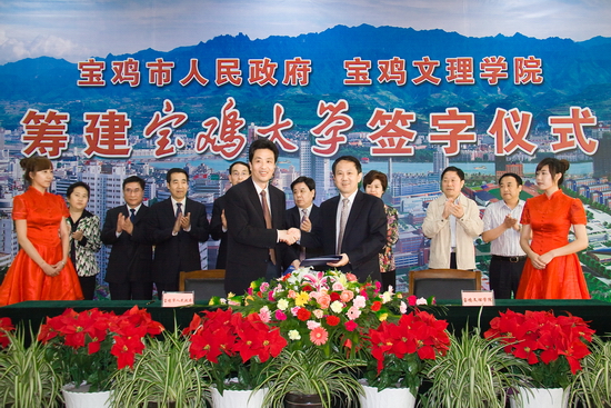 宝鸡市人民政府与bat365在线中国官网登录入口隆重举行筹建宝鸡大学签字仪式
