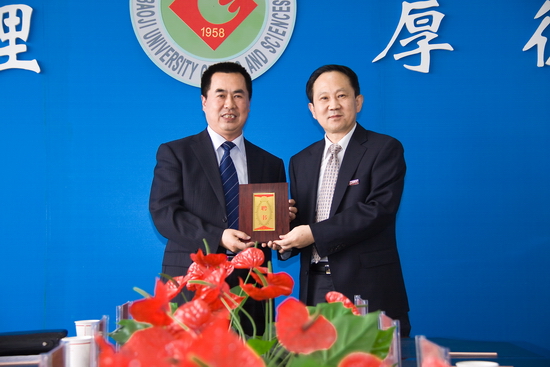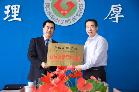 最后,王志刚向李富生颁发了聘书。傅志军为宝鸡市体育局赠教育教学实践基地铜牌。
