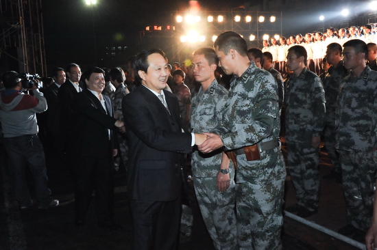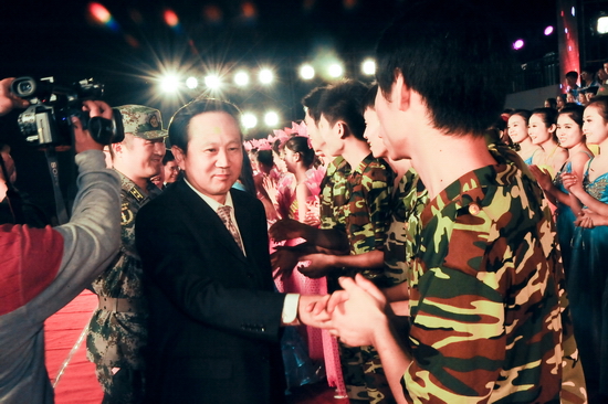 9月14日晚8时,学院新校区体育场内灯火璀璨,歌声如潮,bat365在线中国官网登录入口2011年“庆国庆、迎新生”军民联欢晚会在这里隆重举行。院党委书记、院长王志刚,院党委副书记米晓东、李全武,副院长傅志军、王普藩、赵荣侠,学院军训团团长、96401部队张智华出席并观看晚会。