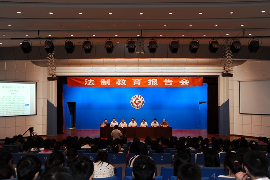 党委宣传部、数学系、外语系、机电工程系党政领导、学生辅导员及1300余名学生聆听了法制教育系列报告。(党委宣传部供稿)