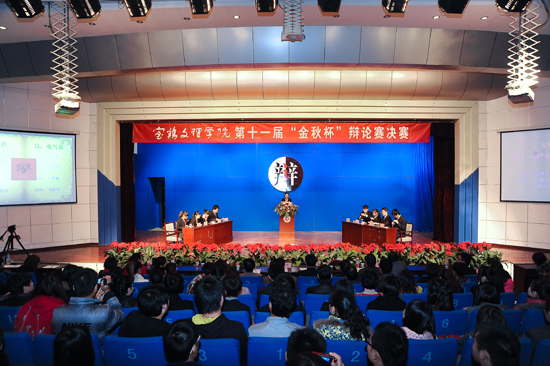 11月22日晚,由院团委主办、中国语言文学系、哲学系团总支承办的第十一届“金秋杯”辩论赛决赛在新校区音乐厅成功举办。院党委副书记米晓东等莅临比赛现场。党委组织部部长郑存库,党委宣传部部长彭志启,图书馆馆长孔润年,科技处处长田延峰,经济管理系党总支书记吕陇平,党委办公室副主任、院长办公室副主任王永君及党委学工部副部长刘景世担任此次大赛评委。