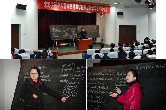 培训报告结束后,组织了示范教学活动。示范教学分文科、理工科两个组同时进行。邀请了我院历年青年教师讲课竞赛获得一等奖的中国语言文学系教师王玉珠、经济管理系教师王静华、计算机科学系教师张浴华和数学系李莹为全院青年教师做示范教学。