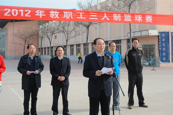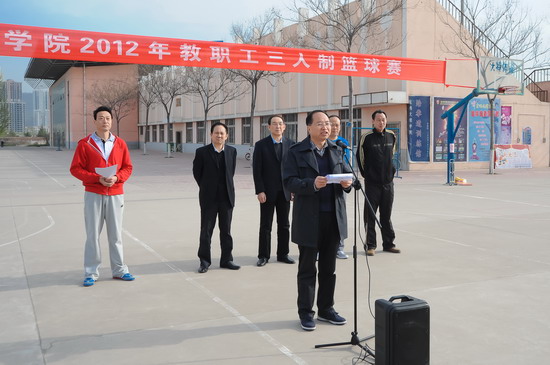 我院2012年教职工三人制篮球赛于4月7日在新校区篮球场隆重举行,院党委书记、院长王志刚,院党委副书记、工会主席李全武等领导出席开、闭幕式并对获奖代表队颁奖。院工会副主席张鹏主持开幕式。