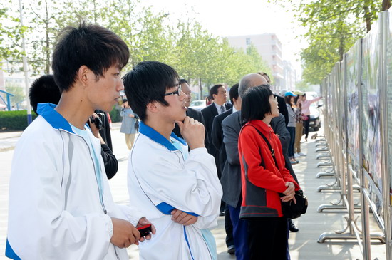 教务处长王富平、副处长李景宜与学校领导一起参观了本次成果展。