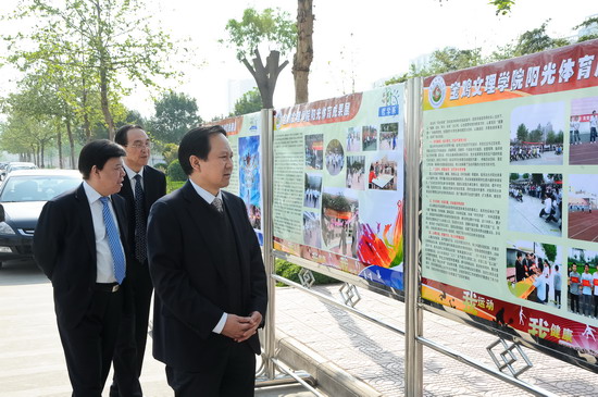为贯彻落实教育部、国家体育总局、共青团中央关于开展全国亿万学生阳光体育运动的决定,展示bat365近年来阳光体育活动成果。4月18日,bat365在新校区举办“阳光体育”成果展。党委书记、院长王志刚,党委副书记米晓东、李全武,副院长傅志军、赵荣侠、杨子元等参观了本次成果展。