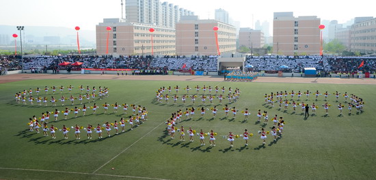 在开幕式和闭幕式上,我院大学生大型歌舞表演《时代·人文》、《舞动青春 魅力外语》、《墨舞丹青》和学生的歌唱表演为运动会增添了靓丽的色彩。