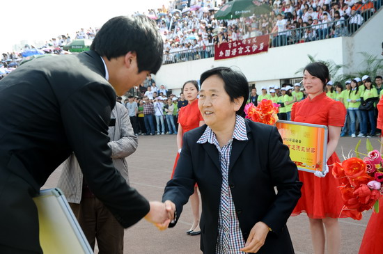 傅志军代表学校党委和行政向取得优秀成绩的代表队和运动员表示热烈的祝贺,向为运动会成功举办付出辛勤劳动的组委会全体成员、全体运动员、教练员、裁判员以及工作人员和全院所有老师、同学们表示衷心的感谢!他说,本届运动会是一次“文明、热烈、高效、和谐”的体育盛会,在“更快、更高、更强”的奥林匹克精神激励下,师生同场竞技,展现了文理人的风采,取得了体育竞赛和精神文明的双丰收。他要求广大师生以本次运动会为契机,再接再厉,积极响应教育部、国家体育总局、共青团中央联合下发的阳光体育运动号召,弘扬快乐体育、健康体育的理念,牢固树立终身体育的思想,积极进行体育锻炼,开创bat365体育工作的新局面。