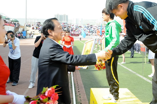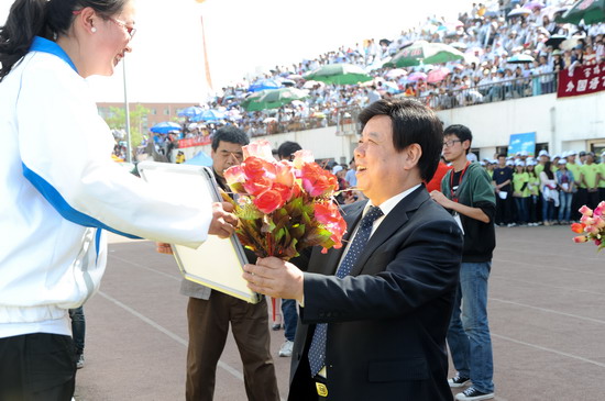 4月20日下午,运动会闭幕式在新校区体育场隆重举行。闭幕式由党委副书记米晓东主持,副院长傅志军致闭幕词。