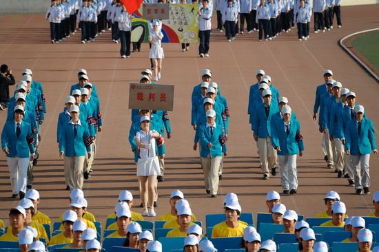 王志刚代表学校党委和行政向运动会的召开表示热烈的祝贺,向为运动会的召开付出辛勤劳动的组委会成员表示衷心的感谢,向全体教练员、运动员、裁判员、工作人员及全院师生员工表示诚挚的慰问!他说,每年一次的运动会,既是对师生员工身体素质、运动技能、拼搏精神的一次检验,也是对全体师生员工协作意识、团队精神的一次检阅。同时也为师生员工同台竞技、互动交流、共同促进提供了一个平台。他在讲话中提出了几点要求:第一,希望全体运动员,发扬 “团结、友谊、进步”的奥林匹克精神,顽强拼搏,服从裁判,赛出水平,赛出风格;第二,希望全体裁判员,严守规程,公正裁决,公平、公正的做好评判工作;希望全体工作人员忠于职守,热情服务,切实做好各项后勤保障工作;第三,希望全体观众遵守纪律、文明观赛。裁判员代表体育系教师王力和运动员代表数学系学生胡伟分别向大会庄严宣誓。