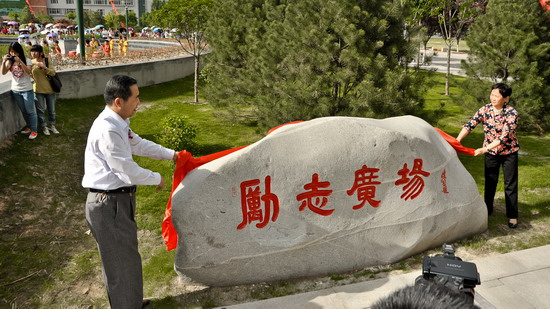在欢快的现场演出和嘹亮的锣鼓声中,王志刚、米晓东、傅志军和赵荣侠分别为“四为园”、“崇实亭”和“励志广场”揭幕。