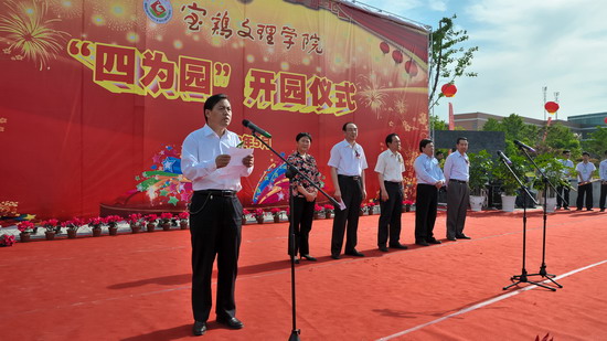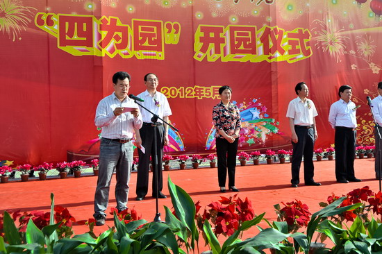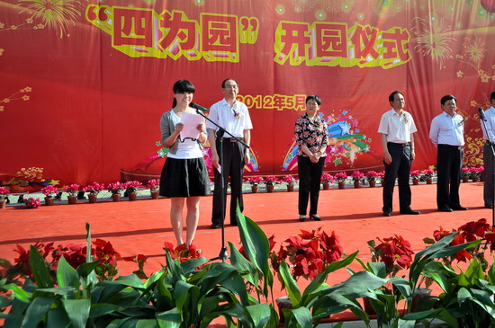5月15日下午,bat365在新校区主题园林广场隆重举行 “四为园”开园仪式。党委书记、院长王志刚,党委副书记米晓东、李全武,副院长傅志军、赵荣侠、杨子元出席开园仪式。李全武主持开园仪式。