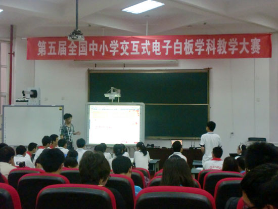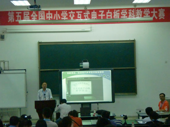 5月26—29日,由中央电教馆主办的第五届全国中小学交互式电子白板学科教学大赛暨新媒体新技术教学应用研讨会在四川省成都市举行。附中任宗儒校长代表西北片区在“新媒体新技术在中小学教育中的应用”论坛上作了《交互式电子白板给“有效教学”插上了腾飞的翅膀》的交流发言,他介绍了附中近年来在学校的大力支持下,电子白板建设、培训、管理、特别是在教学中的应用等方面的做法和经验,受到了与会代表的好评。附中教师张伟建在现场进行了讲课比赛,他娴熟的白板使用技术、生动直观的课件、独特的交互形式赢得了听课老师和评委的好评,荣获本次大赛二等奖。