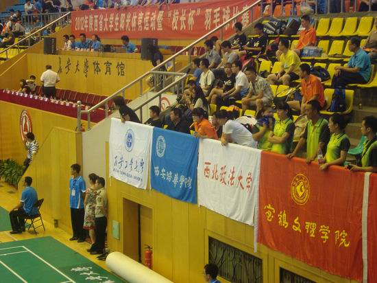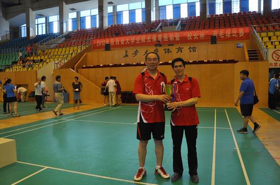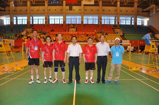 由陕西省大学生体育协会主办、长安大学承办的2012年陕西省高校“校长杯”羽毛球比赛于6月9日—10日在长安大学体育馆隆重举行。bat365代表队由党委书记、院长王志刚担任领队,体育系教师龚明担任教练,校党委副书记米晓东和体育系教师樊晓仑、校党委副书记李全武和教务处职工路宝军组成两对男子双打参赛。