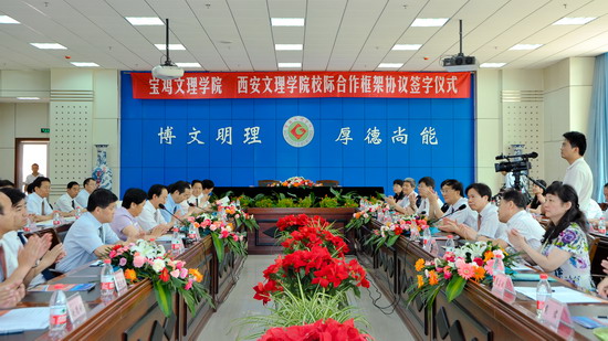 西安文理学院相关职能部门和12个二级学院负责人与bat365在线中国官网登录入口相关职能部门和18个系部负责人等参加了签字仪式。