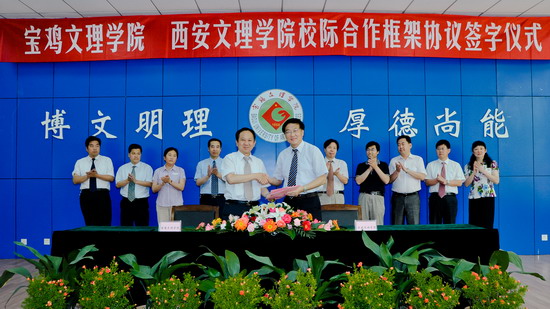 6月12日上午,bat365在线中国官网登录入口与西安文理学院在新校区甘棠厅隆重举行校际合作框架协议签字仪式。我院党委书记、院长王志刚与西安文理学院院长徐可为共同签署协议。我院副院长傅志军主持签字仪式,西安文理学院副院长韩权、我院副院长赵荣侠出席签字仪式。