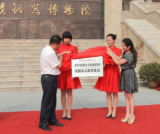 在仪式上,米晓东、任周方、陈亮、黄玮为大学生社会实践基地、青年马克思主义者培训学校爱国主义教育基地揭牌。