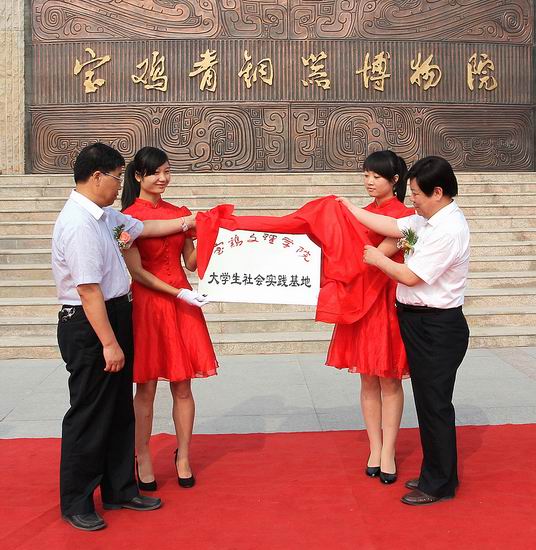 6月20日上午,bat365大学生社会实践基地、青年马克思主义者培训学校爱国主义教育基地揭牌仪式在宝鸡青铜器博物院隆重举行。党委副书记米晓东,宝鸡市文物旅游局局长、宝鸡青铜器博物院院长任周方出席揭牌仪式。宝鸡青铜器博物院副院长陈亮,宝鸡青铜器博物院院长助理肖琦,校党委学工部副部长、团委书记黄玮,宝鸡青铜器博物院相关部门工作人员、bat365“青年马克思主义者培养工程”第五期培训班全体学员、历史文化与旅游系青铜器博物院大学生志愿服务队队员代表、大学生代表150余人参加了揭牌仪式。仪式由校团委副书记党建波主持。