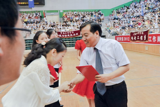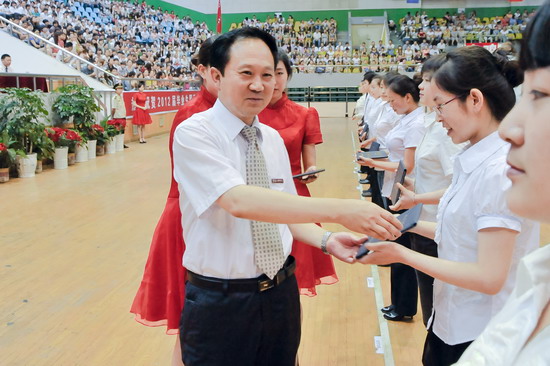 在毕业典礼王志刚向毕业生代表颁发了毕业证书;米晓东、李全武为西部志愿者颁发奖金;赵荣侠、杨子元为校级优秀毕业生代表颁发荣誉证书。教务处处长王富平宣读了2012届学生毕业资格审查结果;学工部(处)长、毕业生就业指导服务中心主任李周让宣布校级优秀毕业生及大学生服务西部志愿者名单。