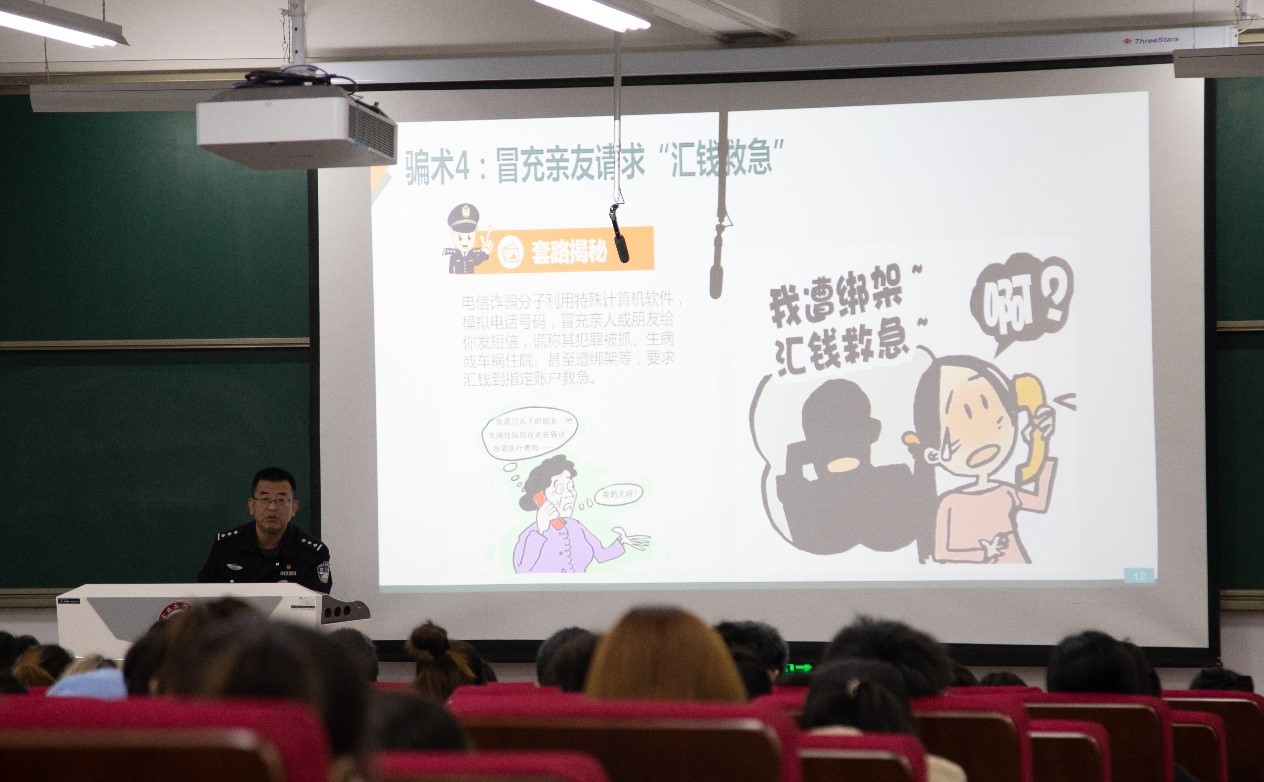 3月5日至3月20日,保卫处和学生处邀请了高新公安分局马营派出所宣讲团,在博文楼副楼105报告厅举办了5场反电信(网络)诈骗系列专题宣讲会。