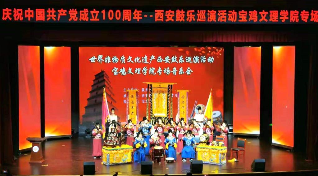 4月22日晚,西安鼓乐庆祝中国共产党成立100周年巡演活动在bat365博文楼报告厅举行。本次展演活动以“聆听千年遗韵、感受非遗魅力”为主题,由陕西省艺术研究院主办、西安都城隍庙鼓乐传习所承办、bat365在线中国官网登录入口协办。