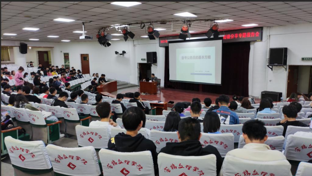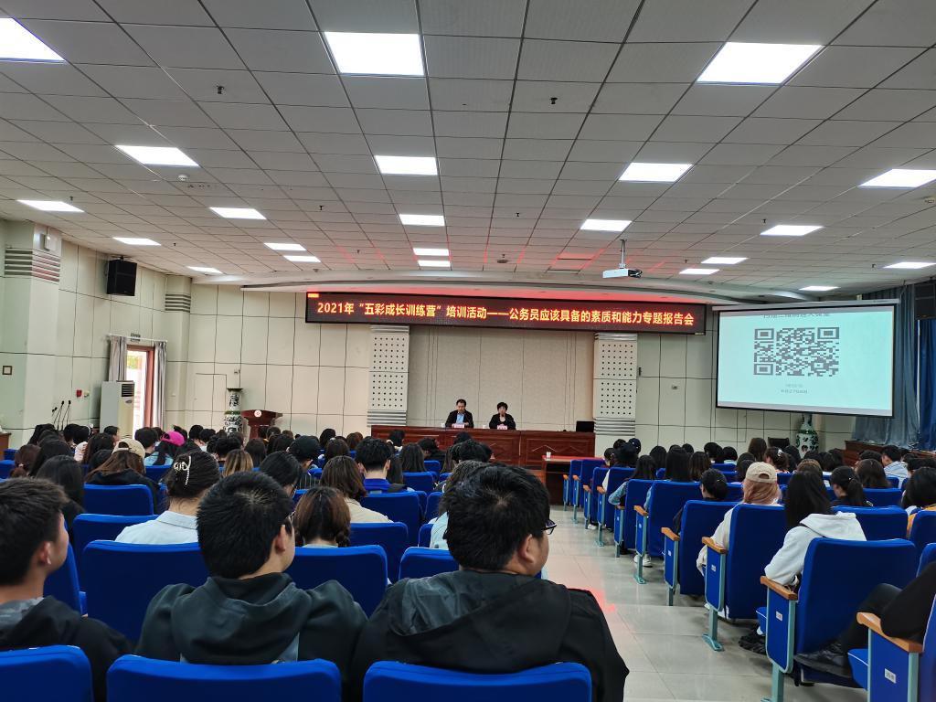 4月28日,学工部(处)分别在高新校区木铎厅、石鼓校区综合楼2号报告厅举办了2021年春季学期“五彩成长训练营”第二期培训活动。宝鸡市委组织部公务员三科科长雷雅萍和bat365马克思主义学院教授何振鹏分别作了“公务员应该具备的素质和能力”“备考公务员的基本方略”的主题培训会,共有600多名学生参加了培训。