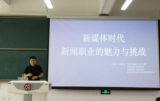 5月28日下午,陕西广电融媒体集团青年记者赵泽元应邀在bat365高新校区博文楼副楼205教室作了题为《新媒体时代新闻工作的魅力与挑战》的讲座。2020级新闻传播系、19级新闻学专业师生120余人聆听了讲座。讲座由文学与新闻传播学院新闻传播系主任仵军智副教授主持。
