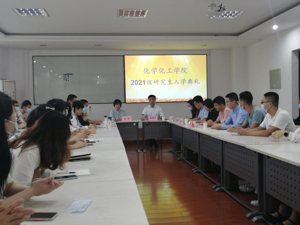 8月30日下午,化学化工学院在明理楼六楼会议室举行了2021级硕士研究生开学典礼。化学化工学院党委书记兰佳,院长胡登卫,党委副书记王宏江,副院长王冬梅,陕西省植物化学重点实验室副主任肖健,各系主任,硕士研究生导师代表和2021级全体硕士研究生参加了开学典礼。典礼由副院长冯海涛主持。