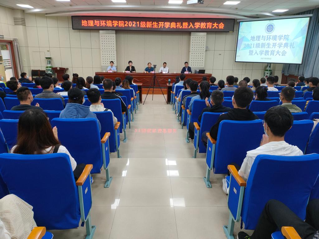 9月6日上午,地理与环境学院分别在新校区木铎厅、博文楼105、205教室举行2021级新生开学典礼暨入学教育大会。利用现代信息技术线上线下组织352名本科生、55名研究生开展入学教育。学院党政领导、教研室主任、全体行政人员、学生辅导员和新生班主任参加了典礼。大会由党委副书记、副院长梁文博主持。