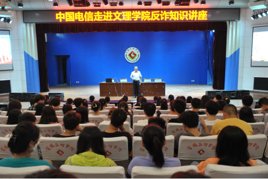 9月16日晚,学校在音乐厅组织召开了反电信诈骗知识宣讲会,中国电信宝鸡分公司政企部副主任梁龙鲲应邀出席宣讲会,会议由保卫处校卫队副队长周文斌主持。