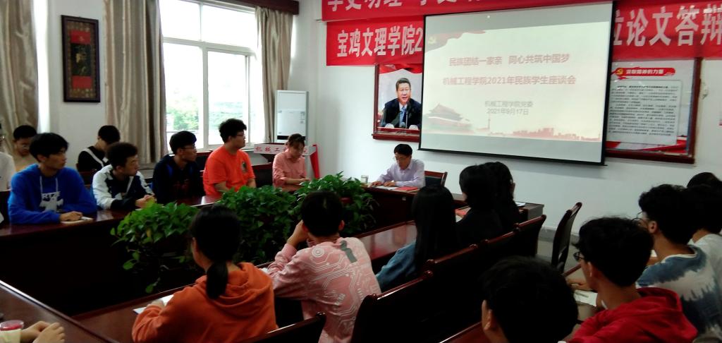 9月17日下午,机械工程学院在石鼓校区主教楼413会议室召开以“民族团结一家亲、同心共筑中国梦”为主题的庆中秋民族学生座谈会,全院6名民族学生、2021级新生班长、团支书、团总支学生会主席、团总支副书记参加了座谈会。会议由院党委书记李建峰主持。