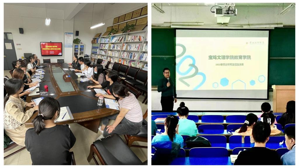 为了做好2022年研究生报考和招生工作,教育学院研究生导师郭智慧和高轶俊于9月22-23日赴渭南师范学院和咸阳师范学院开展研究生招生宣讲活动。渭南师范学院和咸阳师范学院共100余名大学生聆听了宣讲会。