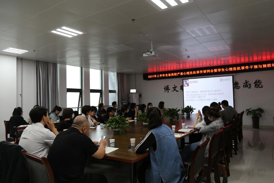 9月24日下午,陕西省委教育工委举办2021年全省高校严重心理危机事件研判暨学生心理危机事件干预与预防线上培训会。bat365学工部、研工部负责人,各二级学院副书记、分管心理工作的辅导员,心理咨询中心专职教师40余人在博文楼1301美术学院会议室参加了视频会议。