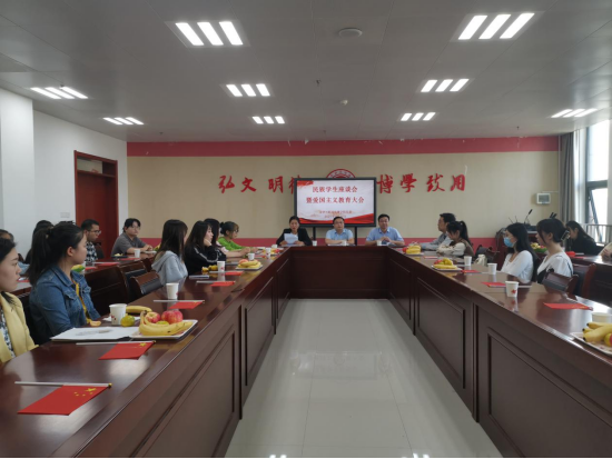9月29日下午,文学与新闻传播学院在博文楼1401会议室召开“庆国庆,促团结”民族学生座谈会暨爱国主义教育活动。学院党政领导、党政办公室主任、全体辅导员和30余名民族学生参加了座谈会,会议由学院副院长孟改正主持。