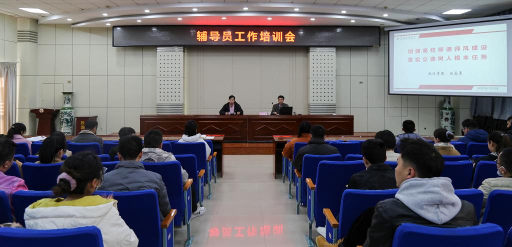为深入学习贯彻习近平总书记关于教育的重要论述,加强辅导员师德师风建设,12月2日下午,学工部在高新校区木铎厅举办辅导员工作培训会。会议由学工部副部长郑运平主持。