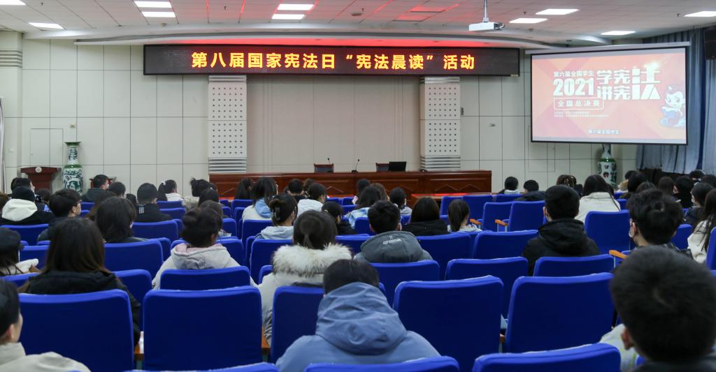 12月3日上午,学工部在高新校区甘棠厅组织学生代表集中观看了“第八届国家宪法日‘宪法晨读’活动”网络直播。
