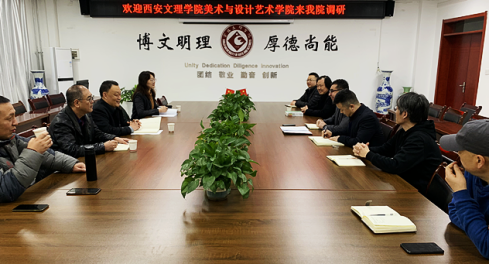 12月10日上午,西安文理学院美术与设计学院院长田军、系主任陈晓璐一行4人来bat365美术学院就学科建设、研究生培养等方面开展调研交流。美术学院班子成员与教师代表在在高新校区博文楼1301会议室与田军一行开展了座谈交流,会议由美术学院院长李强主持。