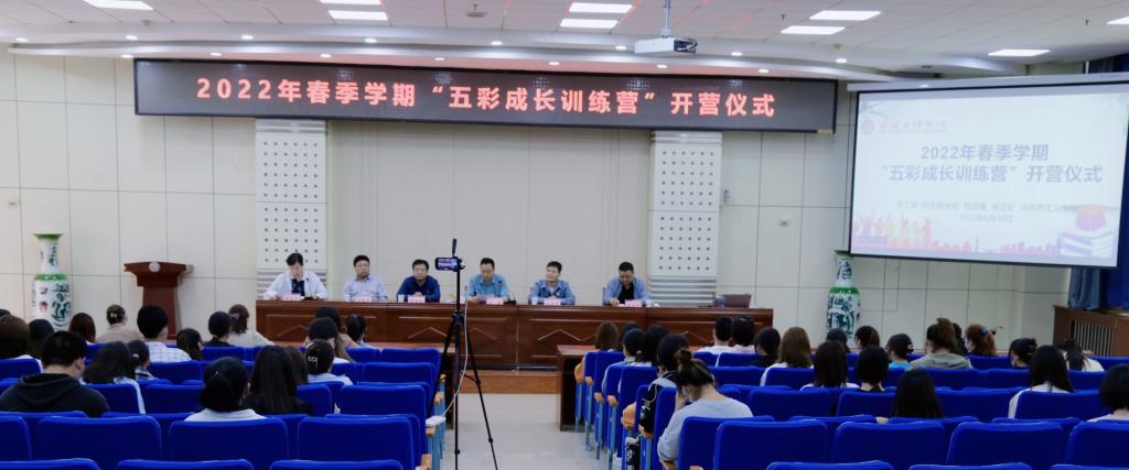 5月18日下午,学校在高新校区木铎厅举行了2022年春季学期“五彩成长训练营”培训活动启动仪式。仪式由学工部(处)副部长郑运平主持。