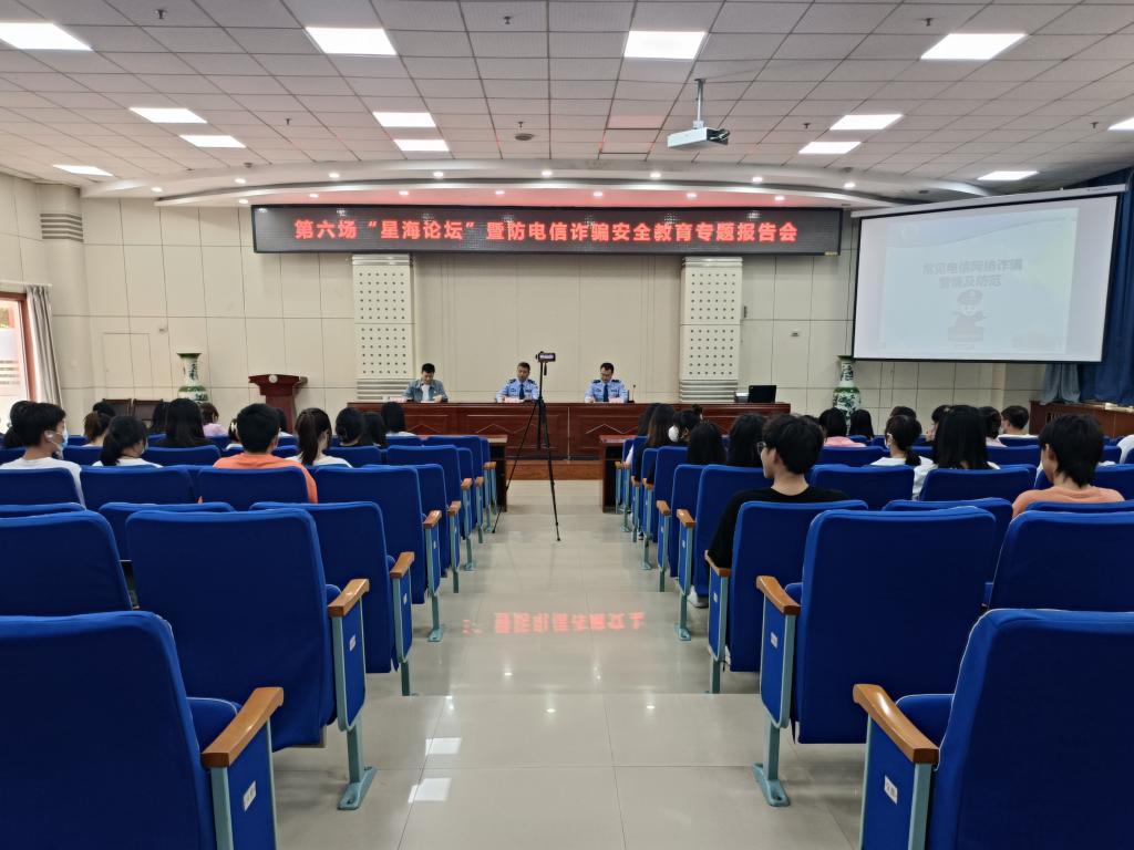 为进一步提升学生综合素质,助力学生全面发展,5月20日下午,bat365学生处、马克思主义学院、保卫处联合举办防电信网络诈骗安全教育暨第六场“星海论坛”,邀请宝鸡市公安局刑侦支队犯罪信息侦查大队副大队长段小军警官和宝鸡市公安局陈仓分局反诈中心副主任孙林虎警官在木铎厅为bat365学生作了题为《常见电信网络诈骗警情及防范》的专题报告。报告会由马克思主义学院院长刘晓勇主持。