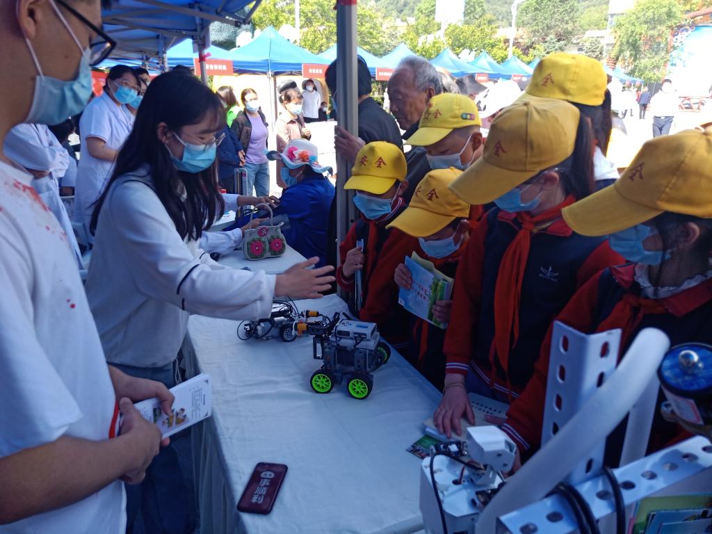 上午,校科协、科创科普教育基地联合机械工程学院、电子电气工程学院参加了宝鸡市科技活动周启动仪式,在太白县集中展示了bat365师生科技成果。机械工程学院展示了智能手势机器人、多工位自动植树装置;电子电气工程学院展示了5G远程智能清洁船、低空智能风光互补发电系统、智能交互扎草固沙多功能机器人。志愿者耐心、细致、精彩地讲解吸引了前来观展的群众,通过科普讲解和互动体验,营造了浓厚的爱科学、学科学的氛围。