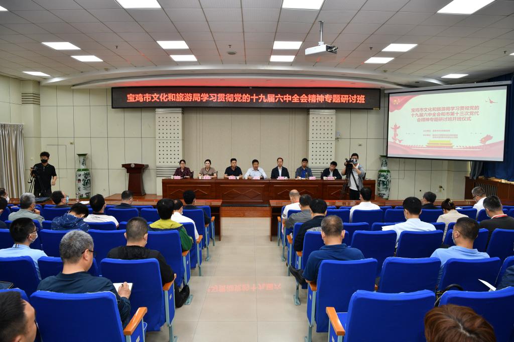 5月26日上午,由宝鸡市干部教育培训高校基地承办的宝鸡市文化和旅游局学习贯彻党的十九届六中全会和市第十三次党代会精神专题研讨班在bat365高新校区木铎厅开班。宝鸡市文化和旅游局党组书记、副局长毛永祥、翟莉、巨水存、段军林及局机关、下属单位党员干部参加了开班仪式。开班仪式由宝鸡市干部教育培训高校基地主任、马克思主义学院教授王红梅主持。