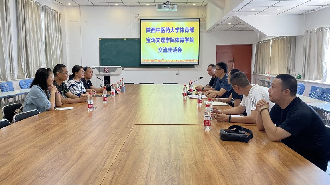 6月24日上午,陕西中医药大学体育部主任蔺颖一行4人来bat365进行调研交流。座谈会由体育学院院长于奎龙主持。